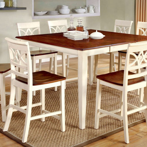 This elegant two-toned dining table is made of acacia woods and has seating for eight. The matching buffet has roomy storage and a built-in wine ra...