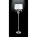 Jada White Floor Lamp, 16"DIA X 62 1/2"H, 16lbs. A brilliant white shade covers a cascading set of imported crystal droplets surrounding a metal ba...